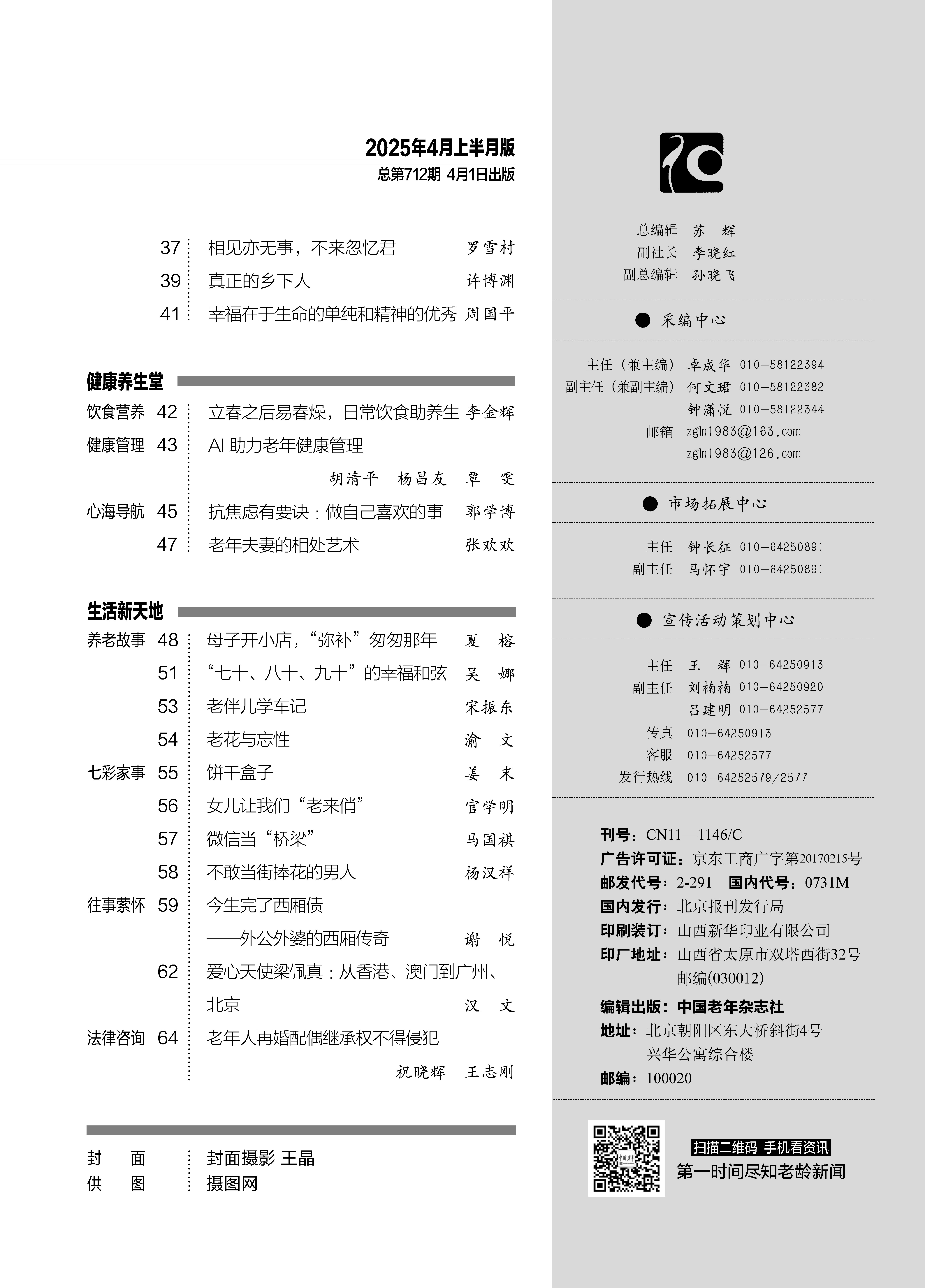 2025年《中国老年》四月上半刊目录