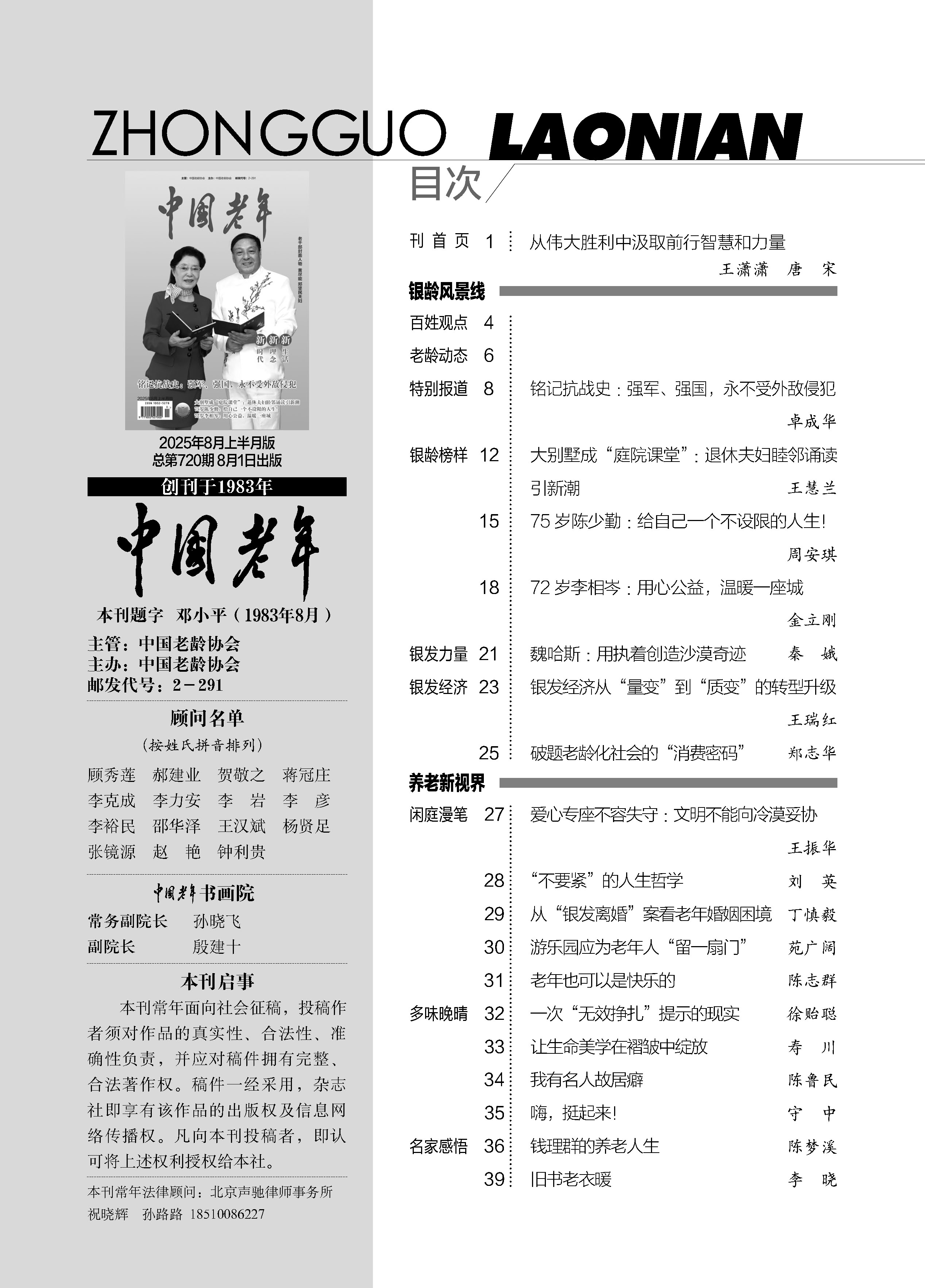 2025年《中国老年》八月上半刊目录