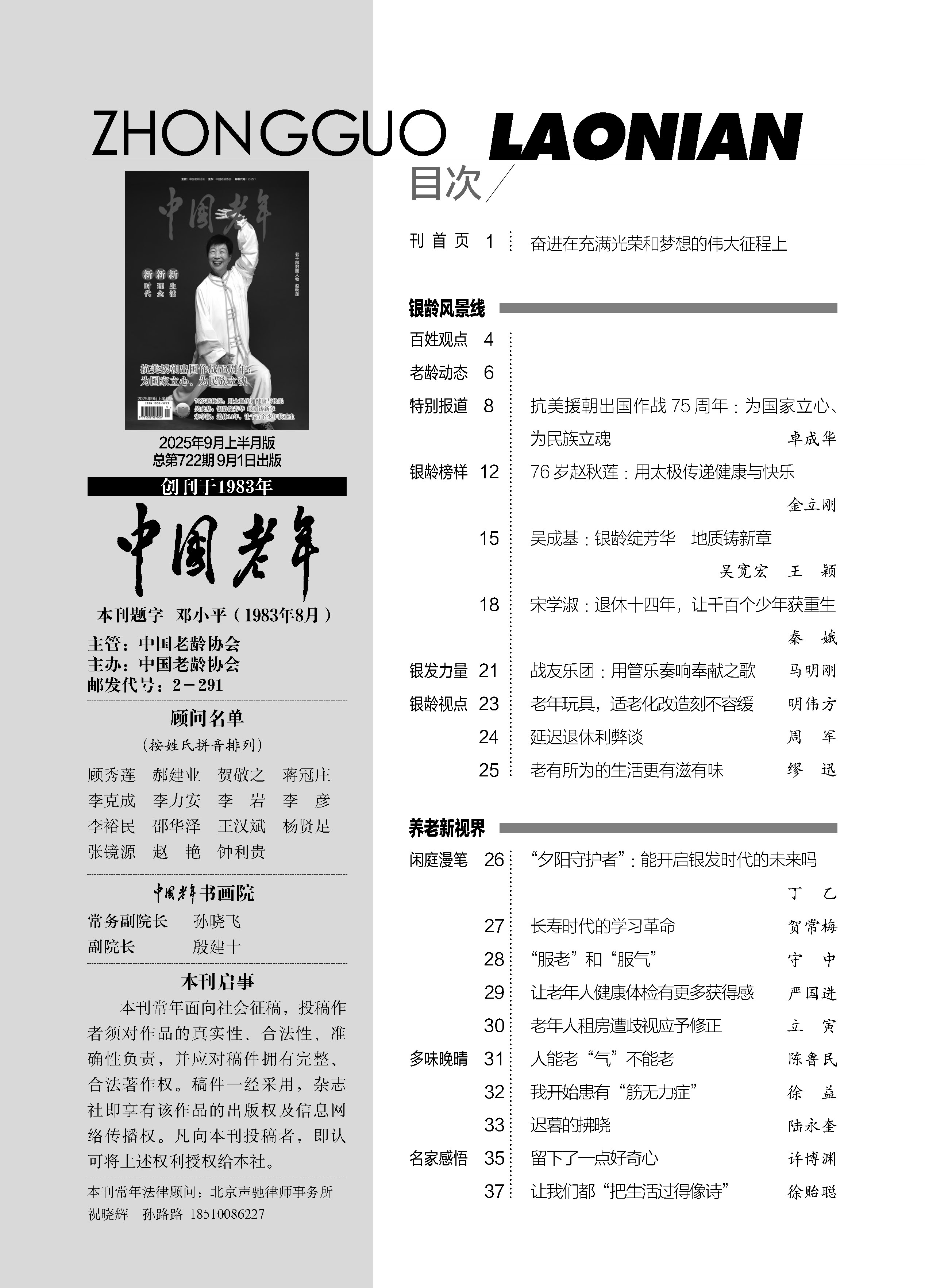 2025年《中国老年》九月上半刊目录