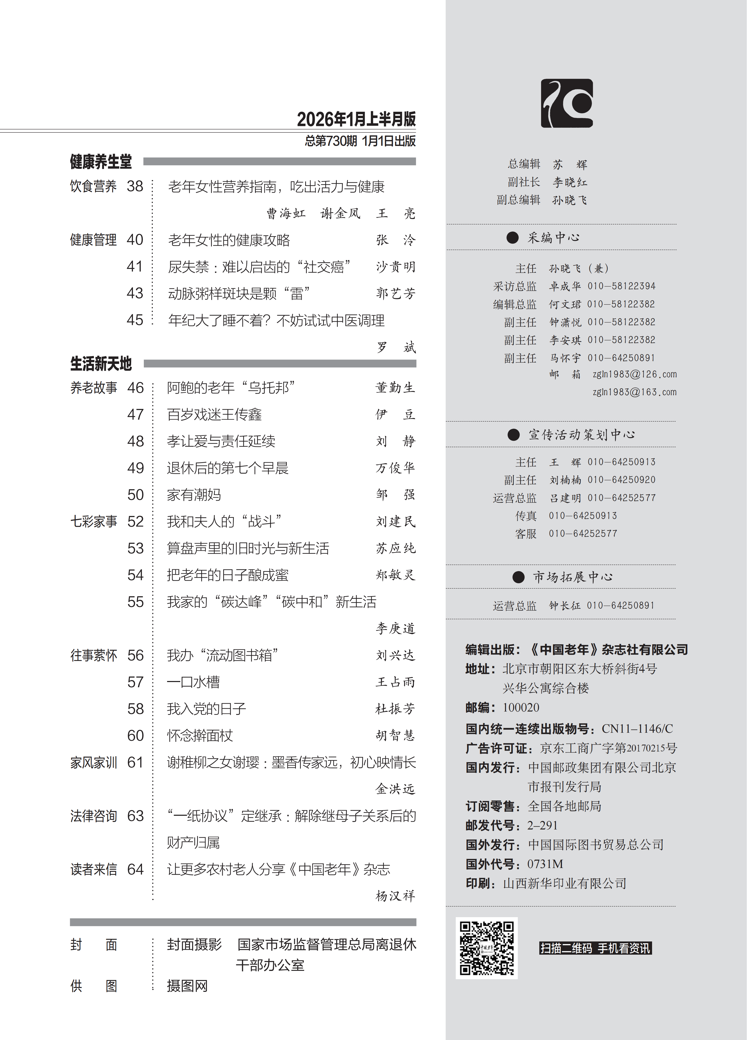 2026年《中国老年》一月上半刊目录
