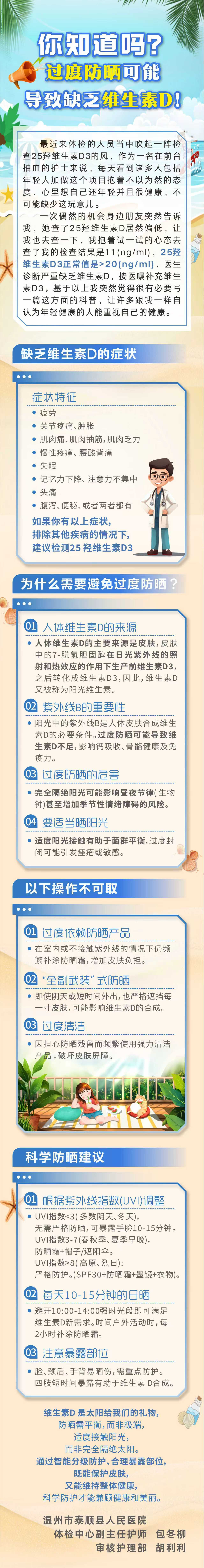 过度防晒可能导致维生素D缺乏