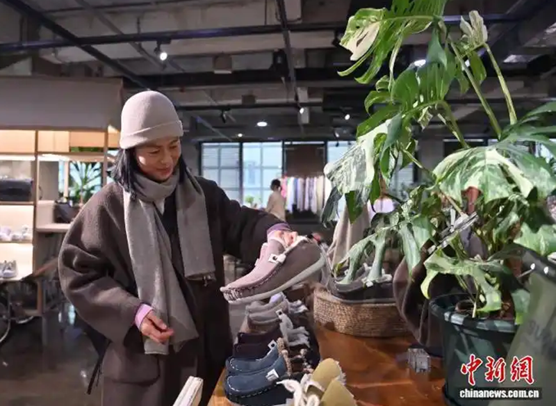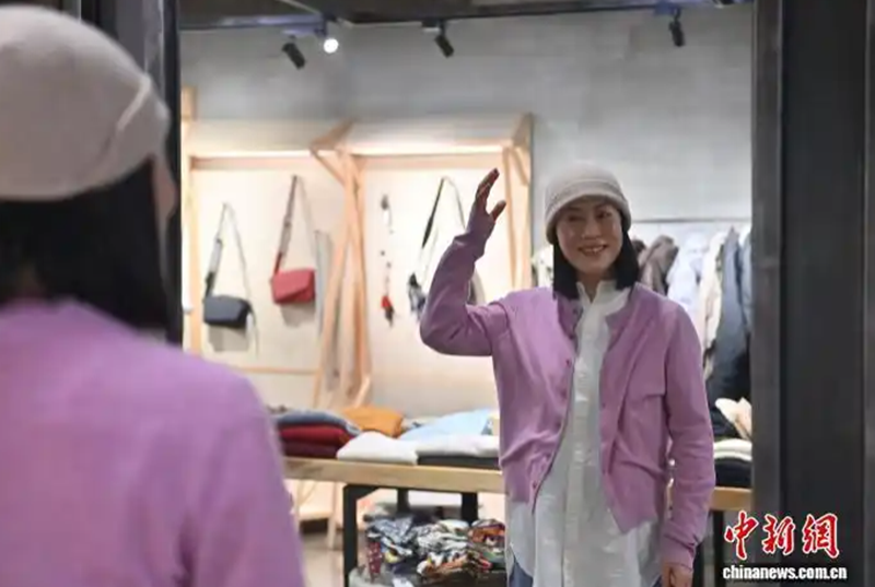 11月24日,吉林长春,六旬穿搭博主张红霞在店内整理货品。中新社记者 张瑶 摄