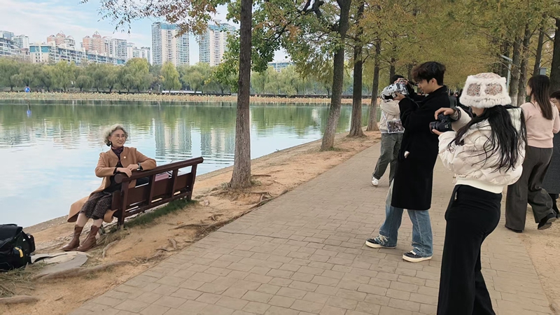 拍摄过程中,也有其他摄影师、市民加入拍摄,有市民认出曹萍“这不是网红奶奶?”